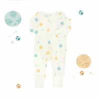 Baby Organic Zip Sleepsuit with Foldable Mittens & Footies - Planets