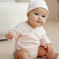 Baby Organic Long Sleeve Kimono Romper in Pink-NB