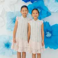 Spring Series - Girls Lace Cheongsam in Pink/Mint Contrast-5Y