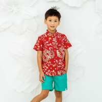 Dragon Series - Boys Shirt in Red Floral Print-2Y