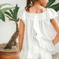 Resort Series - Girls Flutter Sleeves Baby Doll Top in White-4Y
