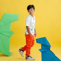Made for Play - Boys Contrast Panel Shirt in T-Rex Print in White-4Y