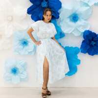 Chinese Motif Series - Ladies Slit Midi Skirt in Blue Orchid Motif-XL