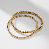 SET OF 2 CZ AND BEADED METAL STRETCH BRACELETS Brass / Gold