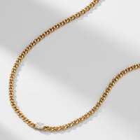 CZ CENTER STONE CURB CHAIN NECKLACE Brass / Gold