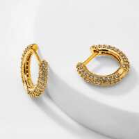SMALL PAVE HUGGIE HOOP EARRINGS Brass / Gold