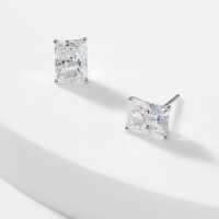 MODERN LOVE LARGE EMERALD CUT CZ STUD EARRINGS Sterling Silver / Rhodium