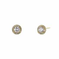 FRAMED ROUND CZ STUD EARRINGS Brass / Gold