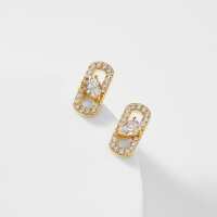 LUCCA CZ SMALL LINK STUD EARRINGS Brass / Gold