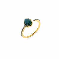 MARI LABRADORITE AND PAVE CZ OPEN CUFF RING Sterling Silver / Gold / 7