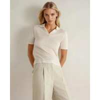 Women's Linen Blend Collared Top New Ivory White M