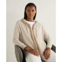 Women's Alicia Fur Trim Cashmere Hoodie Ecru White XS