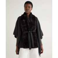 Women's Isabella Fur Trim Cashmere Cape Dark Charcoal Grey
