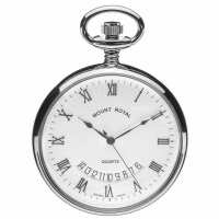 Mount Royal Chrome Plated Quartz Open Face Pocket Watch, Colour: Silver, Style: Open Face B30C