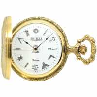 Jean Pierre Of Switzerland Full Hunter Gold Plated Masonic Quartz Pocket Watch, Colour: Gold, Style: Full Hunter G129PQ