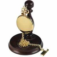 Burleigh Full Hunter Polished Gold Plated Stainless Steel Pocket Watch With Chain & Stand, Colour: Gold, Style: Full Hunter 1924