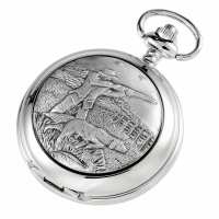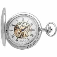 Woodford Chrome Plated Full Hunter Mechanical Pocket Watch With Engravable Shield, Colour: Silver, Style: Full Hunter W1082