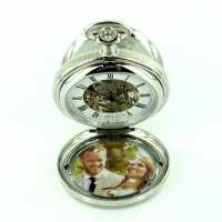 Greenwich The Kew - Mechanical Chrome Plated Photo Frame Pocket Watch, Colour: Silver, Style: Double Hunter GPW101