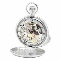 Woodford Polished Chrome Plated Double Hunter Mechanical Pocket Watch, Colour: Silver, Style: Double Hunter W1062