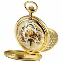 Woodford Gold Plated 17 Jewel Dual Moon Dial Mechanical Double Hunter Pocket Watch, Colour: Gold, Style: Double Hunter W1051