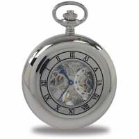 Rapport Chrome Double Half Hunter Skeleton Pocket Watch, Colour: Silver, Style: Half Double Hunter PW45