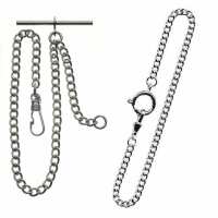 Greenwich Chrome Plated 9 Inch Single Albert T-Bar Pocket Watch Chain Bundle Bn2-Chr