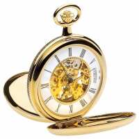 Jean Pierre Of Switzerland Gold Plated Double Hunter Mechanical Pocket Watch, Colour: Gold, Style: Double Hunter G251PM