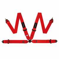 Raceworks 4 Point Cam Lock Harness w/Snap On Ends - Red (FIA Approved)