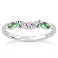 Butterfly and Bee Vine Twist Lab Emerald Wedding Band 14K White Gold