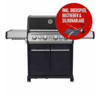 SANTOS S-418 mit Seiten- & Heckbrenner | Schwarz inkl. Drehspieß, Rostheber & Silikonablage