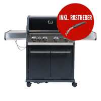 SANTOS Free S-410 Einbaugrill mit Heckbrenner, Schwarz, Inkl. Rostheber