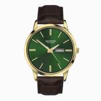 Sekonda Jackson Men’s Watch | Gold Alloy Case & Brown Leather Strap with Green Dial