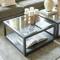 Rivièra Maison Salontafel Roger Mangohout en glas, 80 x 80cm - Zwart - Vierkant