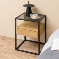 Bendt Nachtkastje Maikel Eiken en glas - Zwart / Eiken