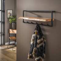 Kapstok Liona Acaciahout en metaal, met 12 haken en plank - Massief acacia naturel