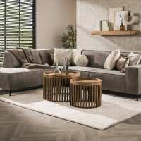 Salontafel Twiggy Mangohout, Set van 2 stuks - Massief mango zandkleur - Rond