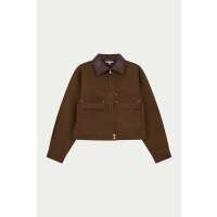 WASHED CONTRAST COLLAR TRUCKER JACKET - CHOCOLATE UK8