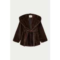 BELTED FAUX FUR HOODED COAT - CHOCOLATE M