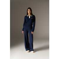 LONG SLEEVE KNITTED COLLAR POLO TOP - NAVY UK6