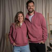 Valentina - Oversized, unisex Half-Zip Sweater aus Biobaumwoll-Mix, Malve XS