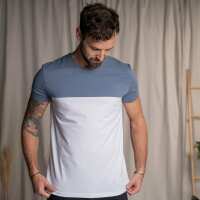Olav - Classic Fit Colourblock T-Shirt aus Biobaumwolle, Rauchblau/Weiß L