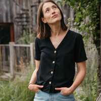 Josevine - Button T-Shirt aus Biobaumwoll-Mix, Schwarz L