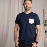 Vilip - Classic Fit T-Shirt mit Brusttasche aus Biobaumwolle, Navy/Beige XL