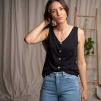 Veline - Button Top aus Tencel-Mix, Schwarz L