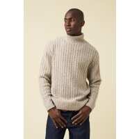 OATMEAL CABLE KNIT ROLL NECK L