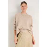 Liana Chunky Crew Neck Jumper - Taupe M