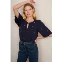 Rochelle Embroidered Jersey Top - Midnight 0