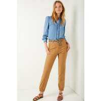 Lara Cotton Cargo Trouser - Tan - Longer Length 0
