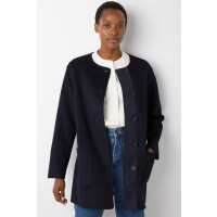 Corine Collarless Double Faced Wool Blend Coat - Navy XS