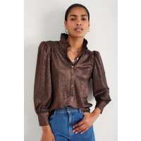 Sathony Metallic Frill Neck Top - Cocoa 5